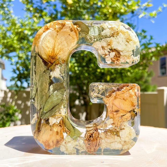 Illuminate your space with the enchanting glow of our Floral Resin Night Light, meticulously crafted with dried flowers encapsulated in crystal-clear resin. This personalized alphabet design adds a touch of nature and elegance to any room, making it a perfect gift or unique decor piece.